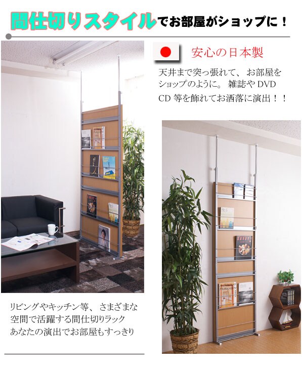 日本製 つっぱり マガジン パーテーション 幅60 60幅 おしゃれ 衝立 間仕切り 本棚 つっぱりラック 収納 マガジンラック ブックラック 国産【送料無料】