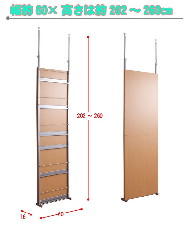 | サイズ:(約)幅60×奥行16×高さ202~260cm 目隠し部高さ:(約)182cm |