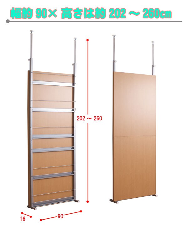 | サイズ:(約)幅90×奥行16×高さ202~260cm 目隠し部高さ:(約)182cm |