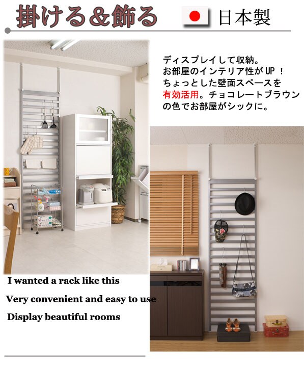 日本製 突っ張り パーテーション ラック 幅60 シルバー スリム ラダーラック オープンラック 衝立 突っ張り 転倒防止 ハンガーラック おしゃれ【送料無料】
