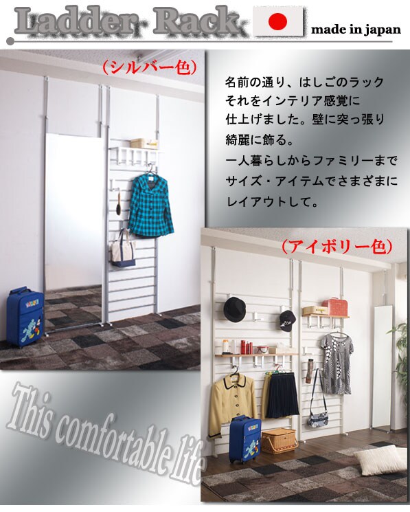 | 国産の品質の高いラダーラック。 はしごの様なデザインからついた名前で、インテリア性が高く、キッチンやリビング等、さまざまなシーンで活躍します。 フックや棚板をうまく活用して、あなたのオリジナルのお部屋に。 |