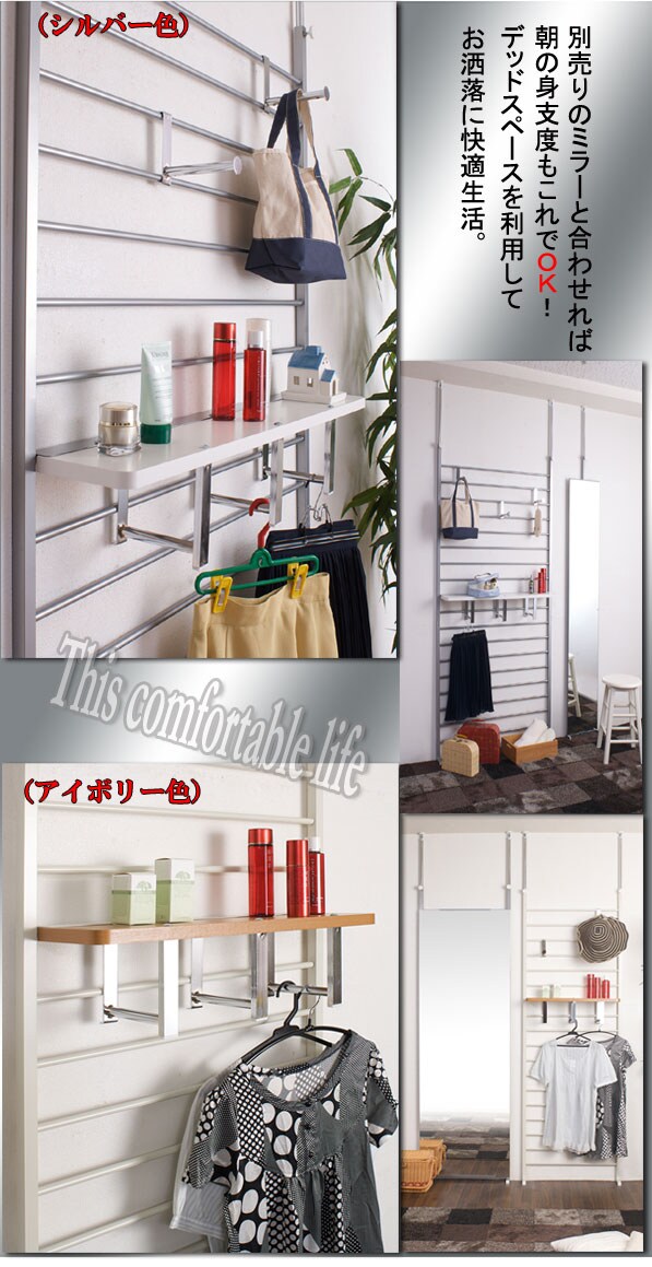 | 本体:スチール(エポキシ樹脂粉体塗装) 棚板:プリント紙化粧繊維板 付属品:フック2個、棚板(ハンガー付)1枚 耐荷重量/棚板:約3kg、フック:約1kg 商品重量:約13kg 組立品 日本製 |