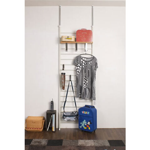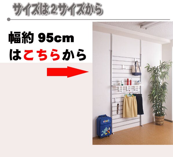 | 本体:(約)幅65(上部突っ張り部66)×奥行き20×高さ200~260cm 棚板可動間隔:(約)8.5cm 棚板サイズ:(約)幅59.5×奥行17.5×厚み2cm フック出幅:14cm |