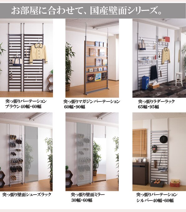日本製 突っ張り パーテーション ラック 幅65 アイボリー スリム ラダーラック オープンラック 衝立 突っ張り 転倒防止 ハンガーラック おしゃれ【送料無料】
