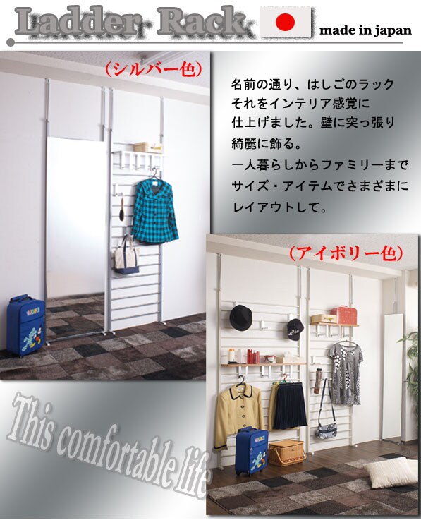 | 国産の品質の高いラダーラック。 はしごの様なデザインからついた名前で、インテリア性が高く、キッチンやリビング等、さまざまなシーンで活躍します。 フックや棚板をうまく活用して、あなたのオリジナルのお部屋に。 |