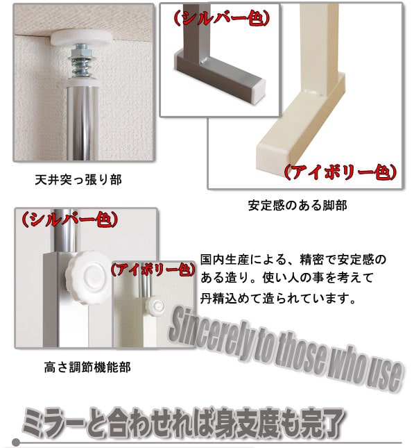 日本製 突っ張り パーテーション ラック 幅95 アイボリー スリム ラダーラック オープンラック 衝立 突っ張り 転倒防止 ハンガーラック おしゃれ【送料無料】