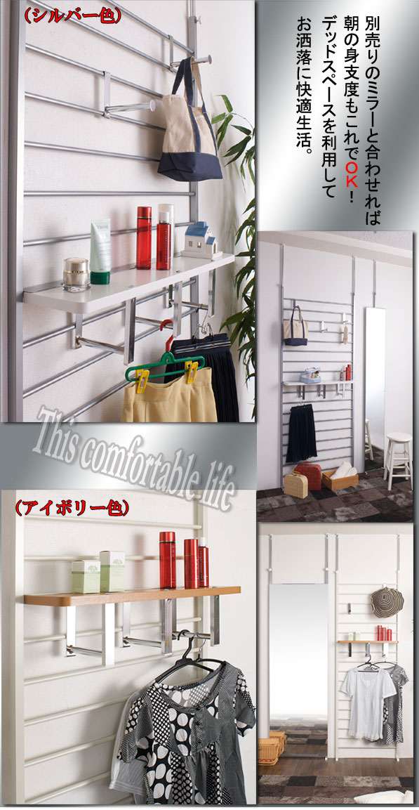 | 本体:スチール(エポキシ粉体塗装) 棚板:プリント紙化粧繊維板 付属品:フック3個、棚板(ハンガー付)1枚 耐荷重量/棚板:約3kg、フック:約1kg 商品重量:約16kg 組立品 日本製 |
