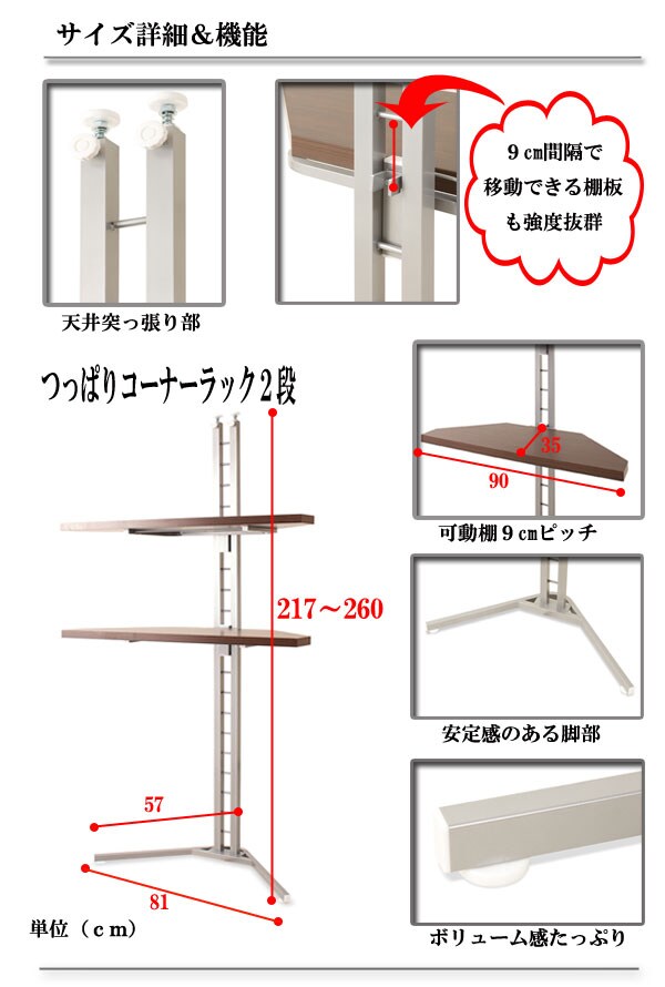 コーナーラック本体:(約)幅81×奥行57×高さ217~260cm