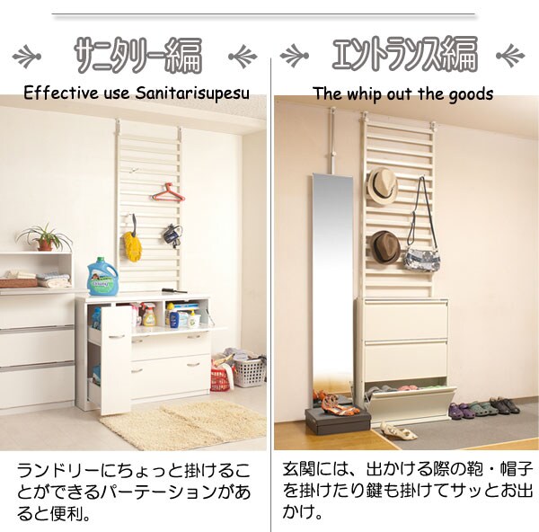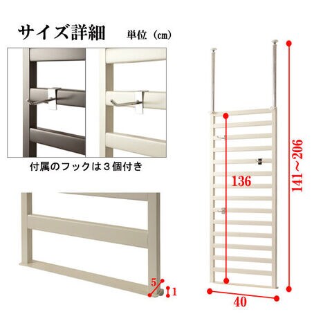日本製 家具に設置できる つっぱり パーテーション 幅40 クリーム ラダーラック 衝立 間仕切り 仕切り フック付き 収納 国産 おしゃれ【送料無料】