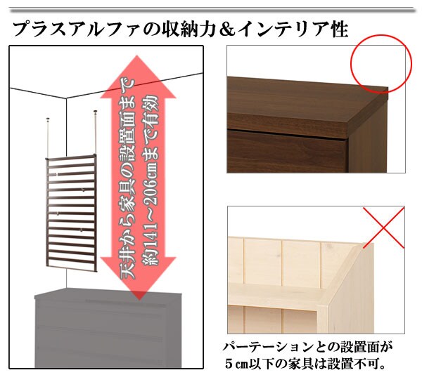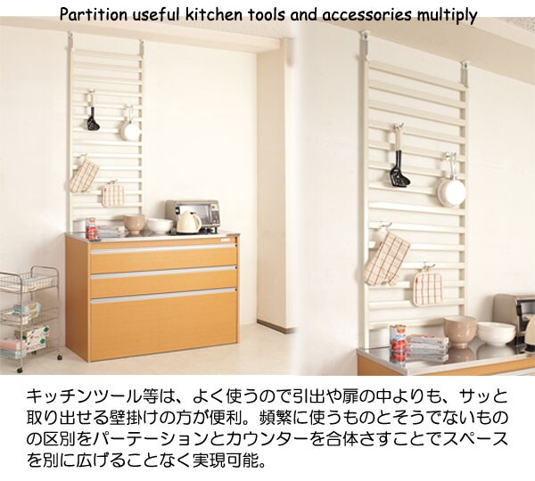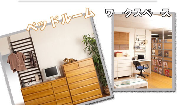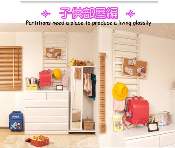 | 家具の後ろに簡単設置できるパーテーションが新登場。家具上の壁面を有効活用できる優れもの。壁に穴を開けたりせず簡単に設置できます。設置することにより天井まで突っ張れるので、家具の転倒防止の役割も備えた機能派! |