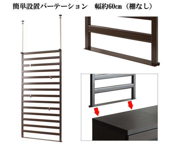 日本製 家具に設置できる つっぱり パーテーション 幅60 ダークブラウン ラダーラック 衝立 間仕切り 仕切り フック付き 収納 国産 おしゃれ【送料無料】