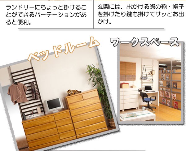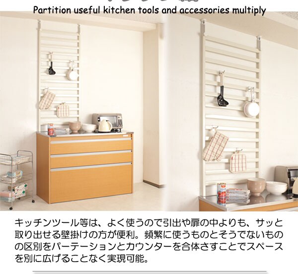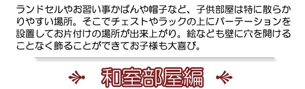 | 家具の後ろに簡単設置できるパーテーションが新登場。家具上の壁面を有効活用できる優れもの。壁に穴を開けたりせず簡単に設置できます。設置することにより天井まで突っ張れるので、家具の転倒防止の役割も備えた機能派! |
