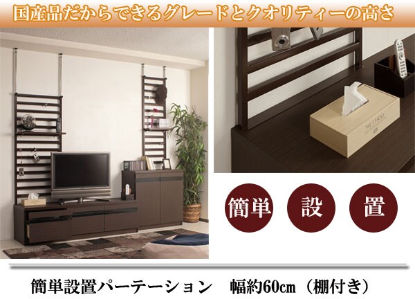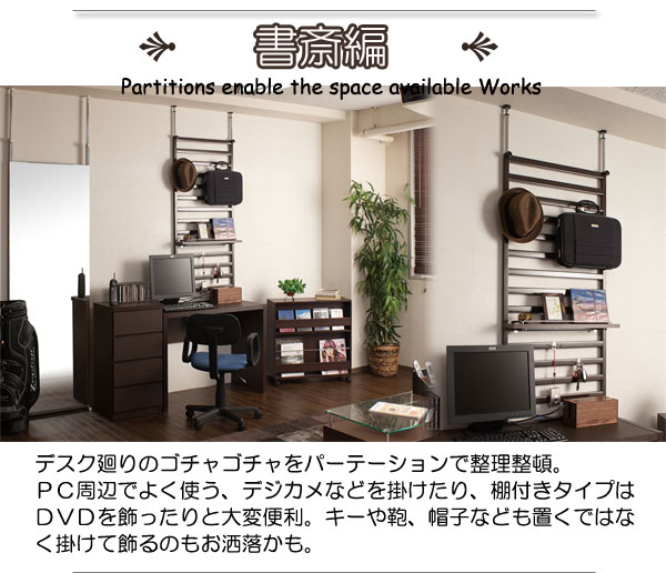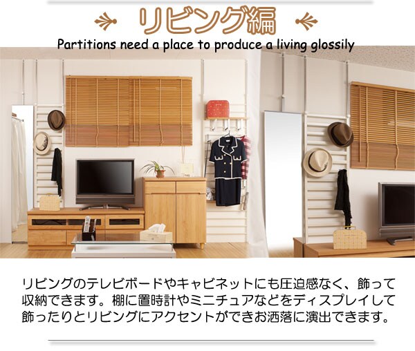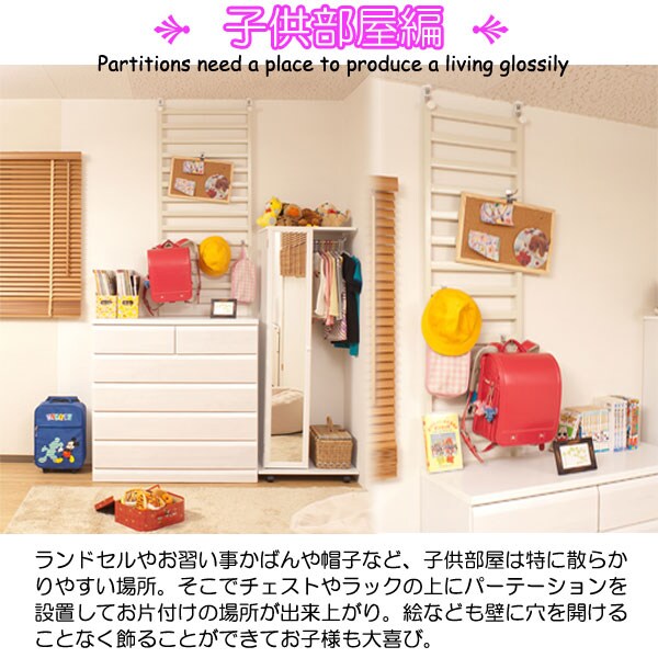 | 家具の後ろに簡単設置できるパーテーションが新登場。家具上の壁面を有効活用できる優れもの。壁に穴を開けたりせず簡単に設置できます。設置することにより天井まで突っ張れるので、家具の転倒防止の役割も備えた機能派! |