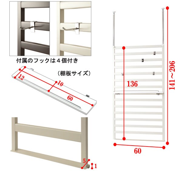 本体:(約)幅60×奥行き5×高さ141~206cm |