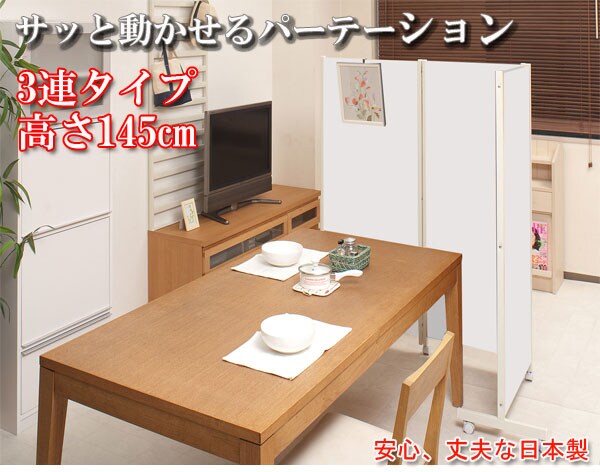 日本製 キャスター付き 間仕切り パーテーション 3連 ホワイト 三連 幅187 高さ145 衝立 ワイド おしゃれ 北欧 ヴィンテージ 国産 白【送料無料】