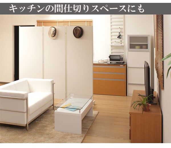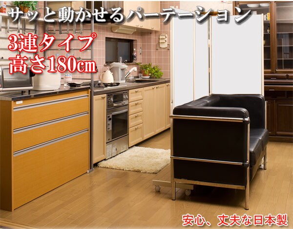 日本製 キャスター付き 間仕切り パーテーション 3連 ホワイト 三連 幅187 高さ180 衝立 ワイド おしゃれ 北欧 ヴィンテージ 国産 白【送料無料】