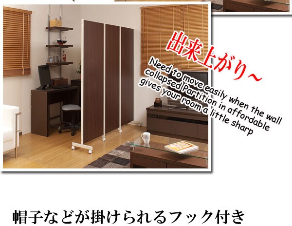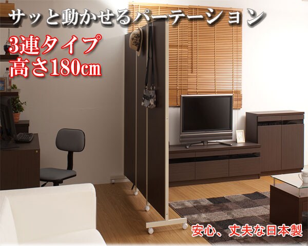 日本製 キャスター付き 間仕切り パーテーション 3連 ダークブラウン 三連 幅187 高さ180 衝立 ワイド おしゃれ 北欧 ヴィンテージ 国産【送料無料】