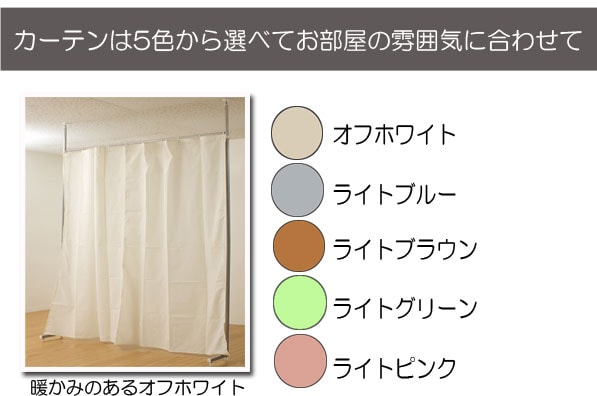 | お部屋の間仕切りに、使って安心日本製。お部屋の雰囲気に合わせてカーテンは5色から選べます。書斎部屋や子供部屋の兄弟の間仕切り等に便利。天井突っ張り式で、天井や床の穴空け不要・場所もとらない設計。 |