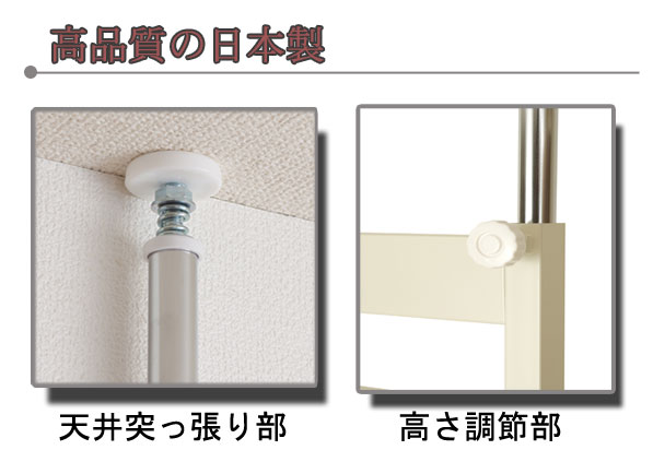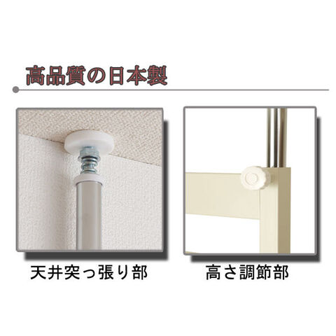 | 本体:(約)幅40(上部突っ張り部41.5)×奥行4×高さ202~260cm フック出幅:(約)7cm 本体・フック:スチール(エポキシ粉体塗装) フック4個付き 商品重量:6kg 日本製 |
