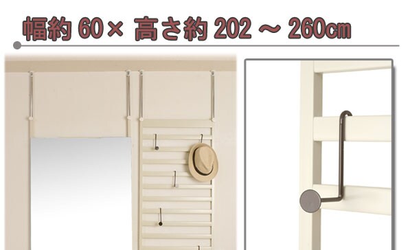 | サイズ:(約)幅60(上部突っ張り部61.5)×奥行4×高さ202~260cm フック出幅:(約)7cm 本体・フック:スチール(エポキシ粉体塗装) フック6個付き 商品重量:8kg 日本製 |