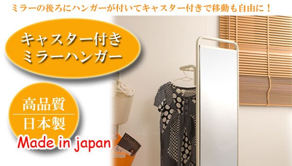 日本製 ミラー付き クローゼット ワゴン 収納 ハンガーラック 鏡 NJ-0084 幅41 スリム コンパクト 国産 コート コートハンガー おしゃれ【送料無料】