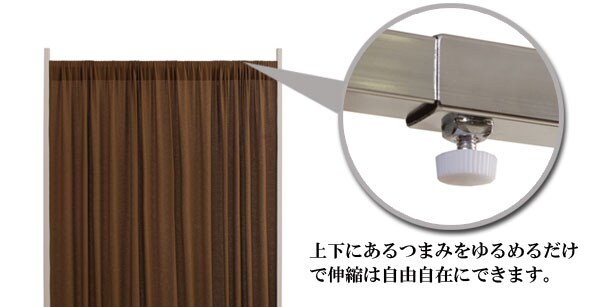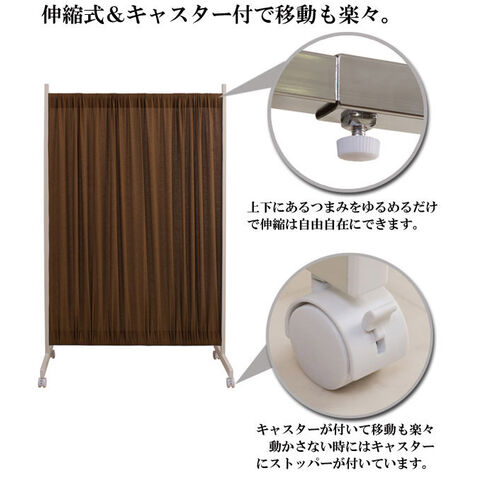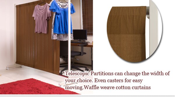 | キャスター付でサッと必要な時に出せる、間仕切りパーテーション。目隠し部分は、木製やパネルでは無く、お部屋に馴染む軽くて使いやすいワッフル地を使用。お部屋のサイズに合わせて伸縮できるのもうれしい機能。ワッフル地をいっぱいひろげて残り伸縮パイプをハンガー代わりにしてお気に入りの服をかけても良し。目隠し&ちょい掛けハンガーで急な来客時等に見せたくない所をサッと目隠し。 |