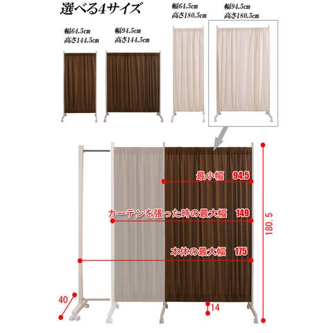伸縮間仕切りパーテーション幅94.5高さ180.5cm ブラウン色 NJ-0106【送料無料】