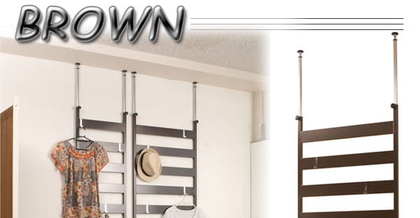 日本製 壁面 つっぱり ディスプレイ ラダーラック 幅66 66幅 ブラウン 茶 リビング キッチン 洗面所 収納 フック付き 棚付き 国産 北欧 棚【送料無料】
