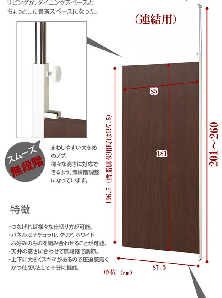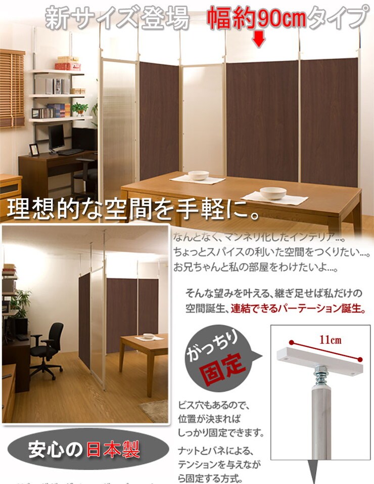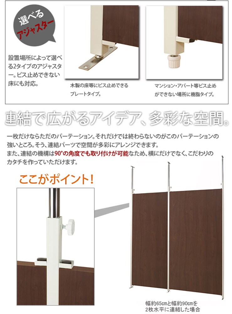 日本製 つっぱり パーテーション 幅87.5cm 連結用 ダークブラウン 会議室 オフィス 会社 事務所【送料無料】
