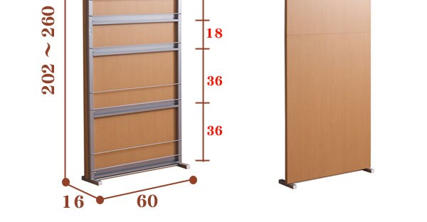 | 本体:(約)幅60×奥行16×高さ202~260cm 目隠し部高さ約182cm |