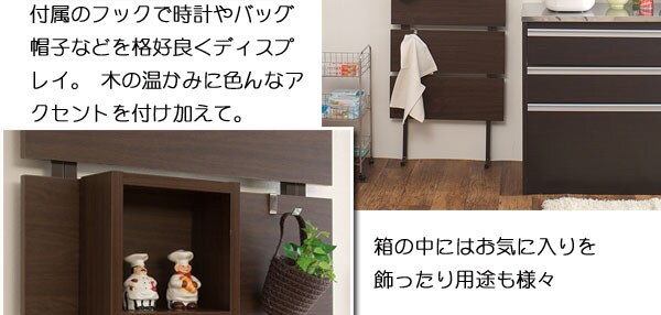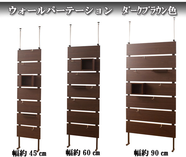| 衣類や小物などを掛けて飾る。お部屋にアクセントが生まれるそんなパーテーションが誕生。ホワイト・ナチュラル・ダークブラウンの3カラーに幅45・60・90cmの3タイプをセレクト。お部屋の雰囲気に合わせて選べるパーテションで貴方のオリジナルのお部屋が完成。他のシリーズと合わせて色んなパターンでお部屋作りができます。もちろん、収納にもこだわりキューブ型ラック、フック、小物プレートまで付属した究極のディスプレイ収納ウォールパーテーション。白壁の雰囲気チェンジや、キズだらけになった壁紙の目隠しとしても、デザインと機能の融合がGOOD!シンプルなホワイト色・温かみあるナチュラル色・重厚感あるダークブラウン色、何セットかピックアップしてカラフルな空間にしてもお洒落。突っ張り式で安心・安全な日本製。 |