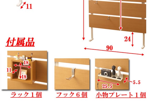 | 付属品/フック5個、ラック1個、小物プレート1個 |