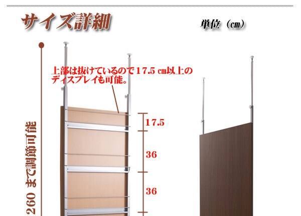 | 本体:(約)幅60×奥行16×高さ202~260cm 目隠し部高さ約182cm |