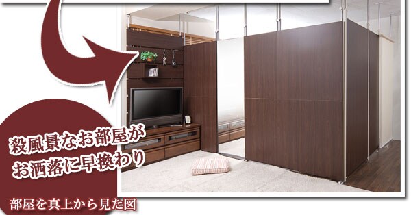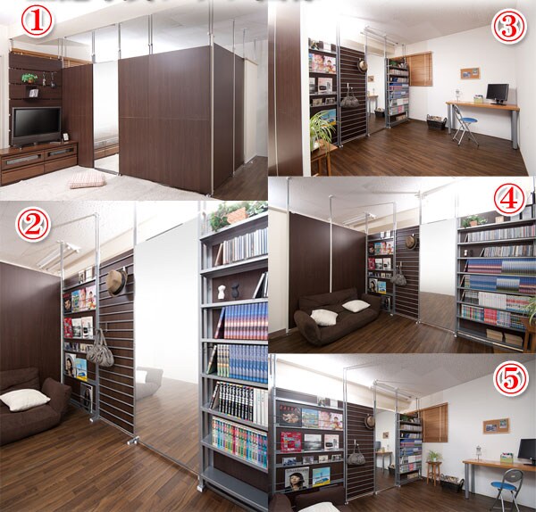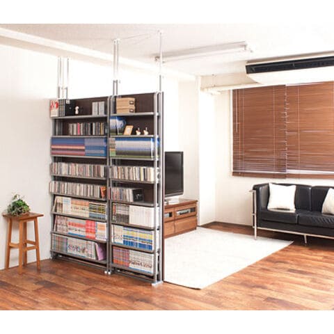 突っ張りパーテーション DVD・コミック・CD収納 ダークブラウン 幅90cm【送料無料】