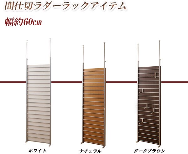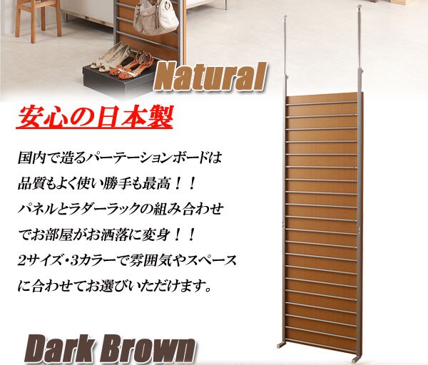 | 間仕切るだけではなくアクセントをつけてお洒落に仕切れる国産の品質の高いラダーラック。はしごの様なデザインからついた名前で、インテリア性が高く、キッチンやリビング等、さまざまなシーンで活躍します。フックをうまく活用して、あなたのオリジナルのお部屋に。パネルは上下分割になっていますので片方だけ外して使用もできます。ホワイト・ナチュラル・ダークブラウンの3色をご用意。間仕切ってもよし、壁付けにして一面飾るもよしの使い勝手自在。他シリーズと組み合わせてプチリフォーム出来ます。 |