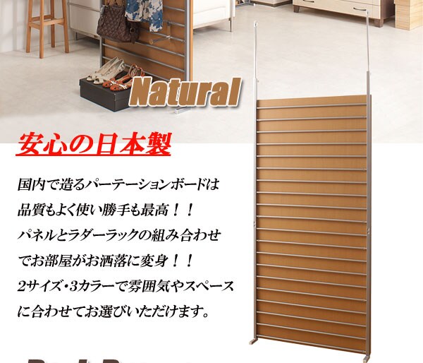 | 間仕切るだけではなくアクセントをつけてお洒落に仕切れる国産の品質の高いラダーラック。はしごの様なデザインからついた名前で、インテリア性が高く、キッチンやリビング等、さまざまなシーンで活躍します。フックをうまく活用して、あなたのオリジナルのお部屋に。パネルは上下分割になっていますので片方だけ外して使用もできます。ホワイト・ナチュラル・ダークブラウンの3色をご用意。間仕切ってもよし、壁付けにして一面飾るもよしの使い勝手自在。他シリーズと組み合わせてプチリフォーム出来ます。 |