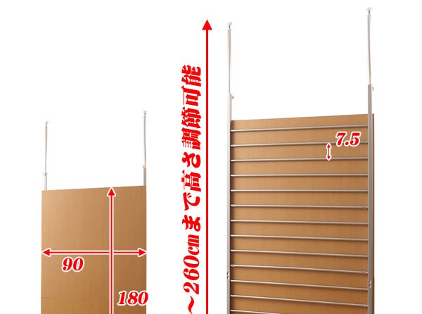 | 本体:(約)幅90×奥行き12×高さ202~260cm バックボード:(約)幅90×高さ180×厚み2cm フック可動間隔:(約)7.5cm フック出幅:(約)14cm |