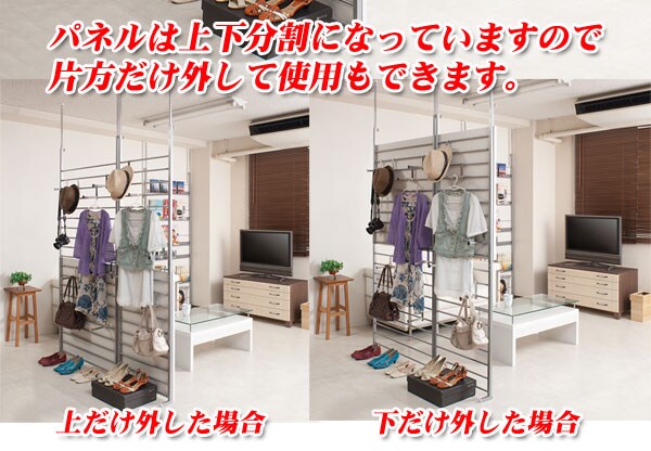 | 間仕切るだけではなくアクセントをつけてお洒落に仕切れる国産の品質の高いラダーラック。はしごの様なデザインからついた名前で、インテリア性が高く、キッチンやリビング等、さまざまなシーンで活躍します。フックをうまく活用して、あなたのオリジナルのお部屋に。パネルは上下分割になっていますので片方だけ外して使用もできます。ホワイト・ナチュラル・ダークブラウンの3色をご用意。間仕切ってもよし、壁付けにして一面飾るもよしの使い勝手自在。他シリーズと組み合わせてプチリフォーム出来ます。 |