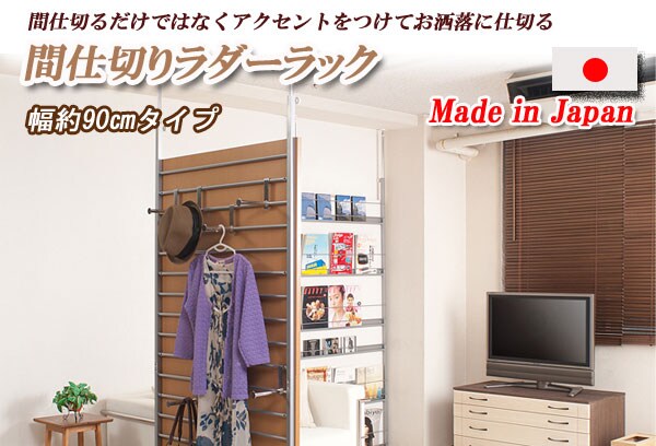 日本製 つっぱり ラダーラック ダークブラウン 茶 幅90 収納 ラック ワイド パーテーション 衝立 仕切り 間仕切り おしゃれ 北欧 国産【送料無料】