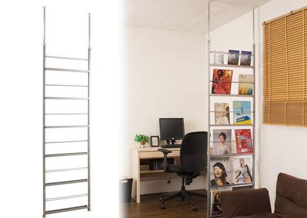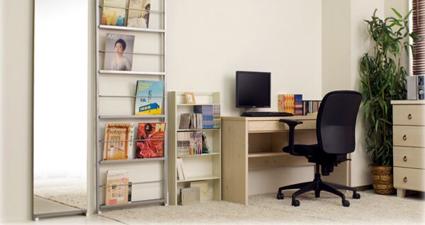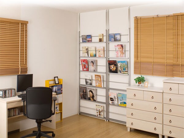 | 両面から出し入れ出来る間仕切りマガジンラック。フレームになっていますので圧迫感なく間仕切れます。 |
