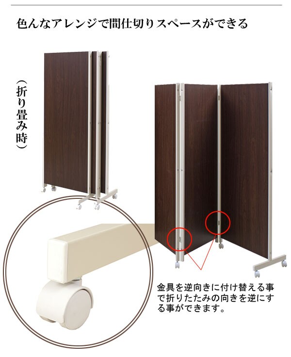 | キャスター付でサッと動かせるパーテーション。簡単に動かせて要らない時は折りたたんで壁際に。急な来客時等見せたくない場所をサッと目隠し。お手軽なパーテーションで、貴方のお部屋にちょっとしたメリハリを与えてくれる。リビングを間仕切って書斎スペースがこれ1台で完成!お姉ちゃんの勉強の邪魔にならないようにパーテーションで仕切り、一緒に遊ぶ時には折りたたんで直す。ライフスタイルを変化させられる優れものです。色んなアレンジで間仕切りスペースができる。ちょっとした、小物が掛けられるフックが4個付いて、大変便利!帽子やデジカメ、他にも色々。大好評の3連タイプに続き4連・5連タイプが新登場! |