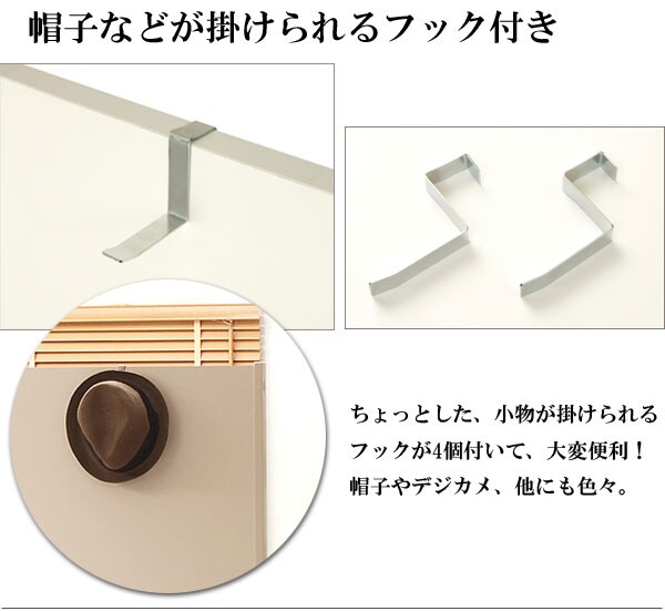 | フレーム:スチール(エポキシ樹脂粉体塗装) パネル:プリント紙化粧繊維板 フック:スチール(メッキ仕上げ) |