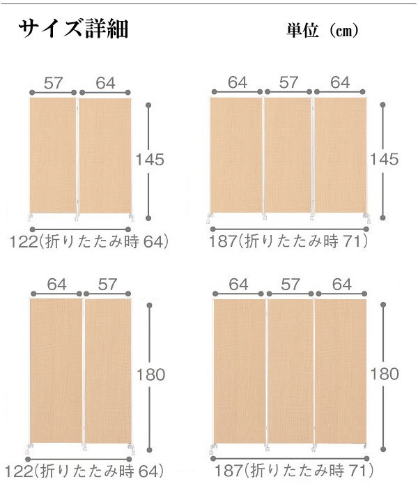 | キャスター付でサッと動かせるパーテーション。簡単に動かせて要らない時は折りたたんで壁際に。急な来客時等見せたくない場所をサッと目隠し。お手軽なパーテーションで、貴方のお部屋にちょっとしたメリハリを与えてくれる。リビングを間仕切って書斎スペースがこれ1台で完成!お姉ちゃんの勉強の邪魔にならないようにパーテーションで仕切り、一緒に遊ぶ時には折りたたんで直す。ライフスタイルを変化させられる優れものです。色んなアレンジで間仕切りスペースができる。ちょっとした、小物が掛けられるフックが4個付いて、大変便利!帽子やデジカメ、他にも色々。大好評の3連タイプに続き4連・5連タイプが新登場! |