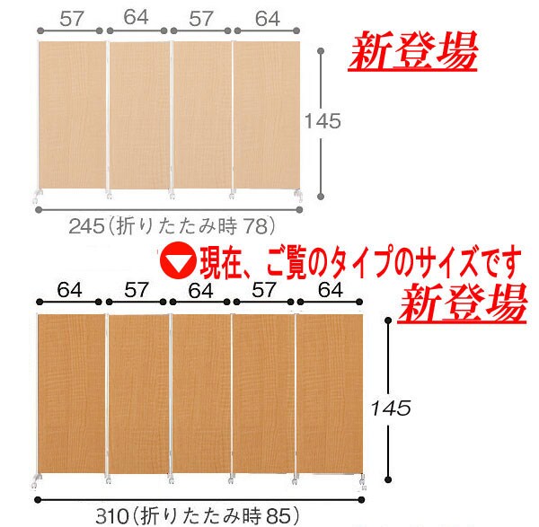 キャスター付きパーテーション5連H145 ダークブラウン【送料無料】