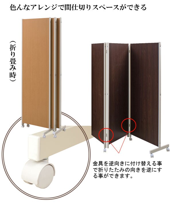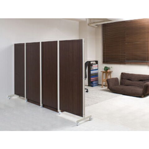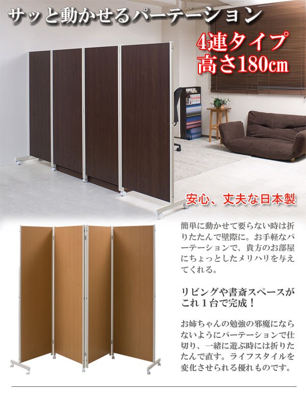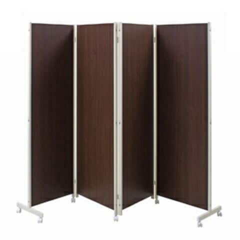 キャスター付きパーテーション4連H180 ダークブラウン【送料無料】