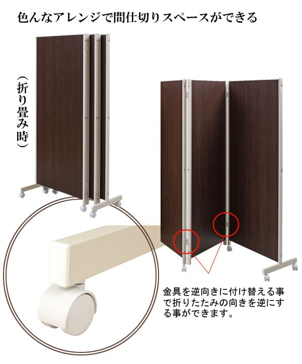 | キャスター付でサッと動かせるパーテーション。簡単に動かせて要らない時は折りたたんで壁際に。急な来客時等見せたくない場所をサッと目隠し。お手軽なパーテーションで、貴方のお部屋にちょっとしたメリハリを与えてくれる。リビングを間仕切って書斎スペースがこれ1台で完成!お姉ちゃんの勉強の邪魔にならないようにパーテーションで仕切り、一緒に遊ぶ時には折りたたんで直す。ライフスタイルを変化させられる優れものです。色んなアレンジで間仕切りスペースができる。ちょっとした、小物が掛けられるフックが4個付いて、大変便利!帽子やデジカメ、他にも色々。大好評の3連タイプに続き4連・5連タイプが新登場! |