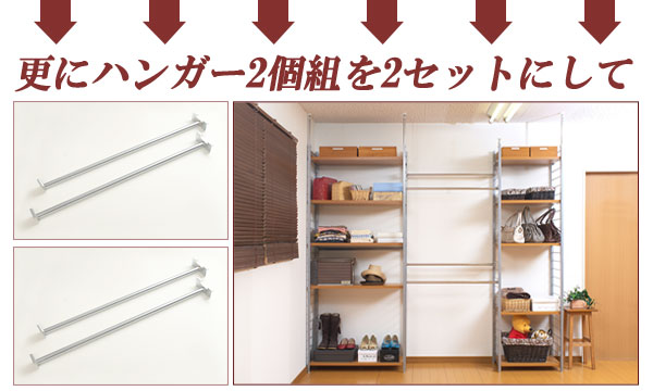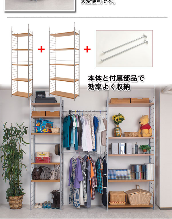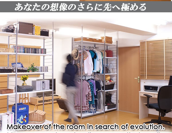 ■お部屋にメリハリをつける間仕切りシリーズは、アレンジ次第でオリジナル空間に変身!たっぷり収納できるラックと、ハンガーが付いた服吊で色んなパターンが完成。