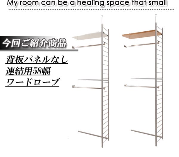 日本製 つっぱり 壁面 間仕切り ワードローブ 幅58 連結用 背板無し ナチュラル 白 突っ張り ハンガーラック オープンラック 国産 おしゃれ【送料無料】