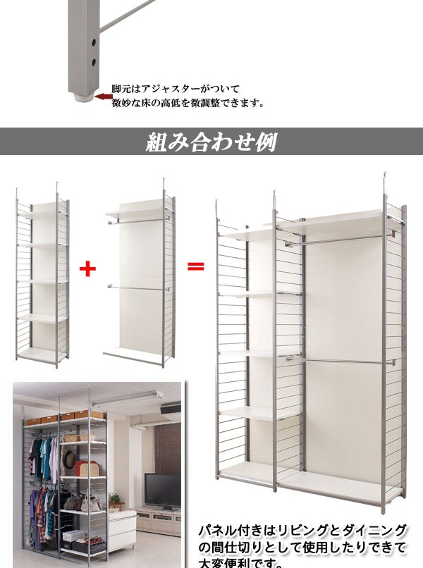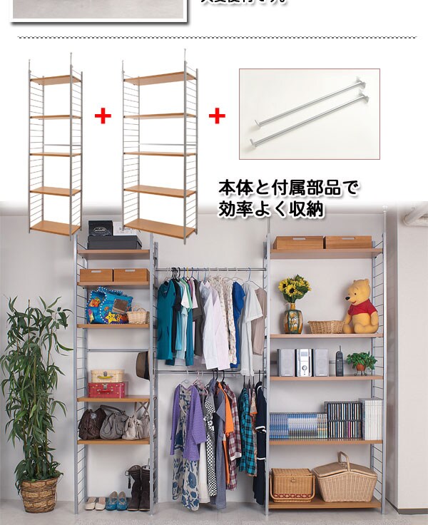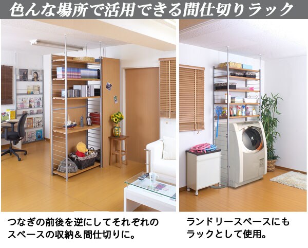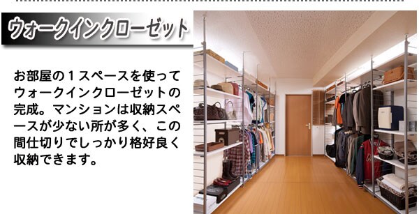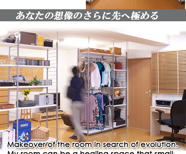 ■お部屋にメリハリをつける間仕切りシリーズは、アレンジ次第でオリジナル空間に変身!たっぷり収納できるラックと、ハンガーが付いた服吊で色んなパターンが完成。
