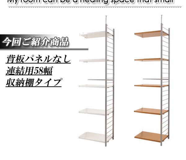 日本製 突っ張り 壁面 間仕切り ラック 幅58 連結用 背板無しタイプ ホワイト つっぱり 収納 壁面収納 オープンラック 国産 背板付き 白【送料無料】